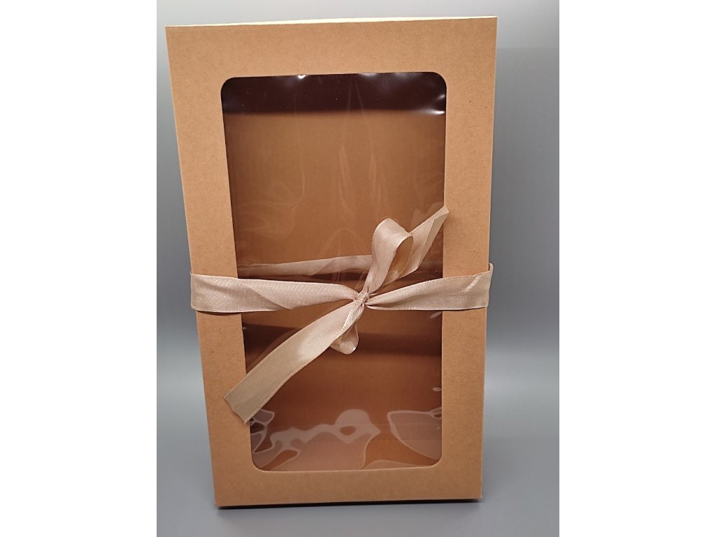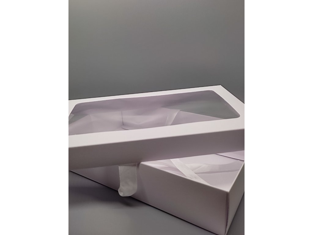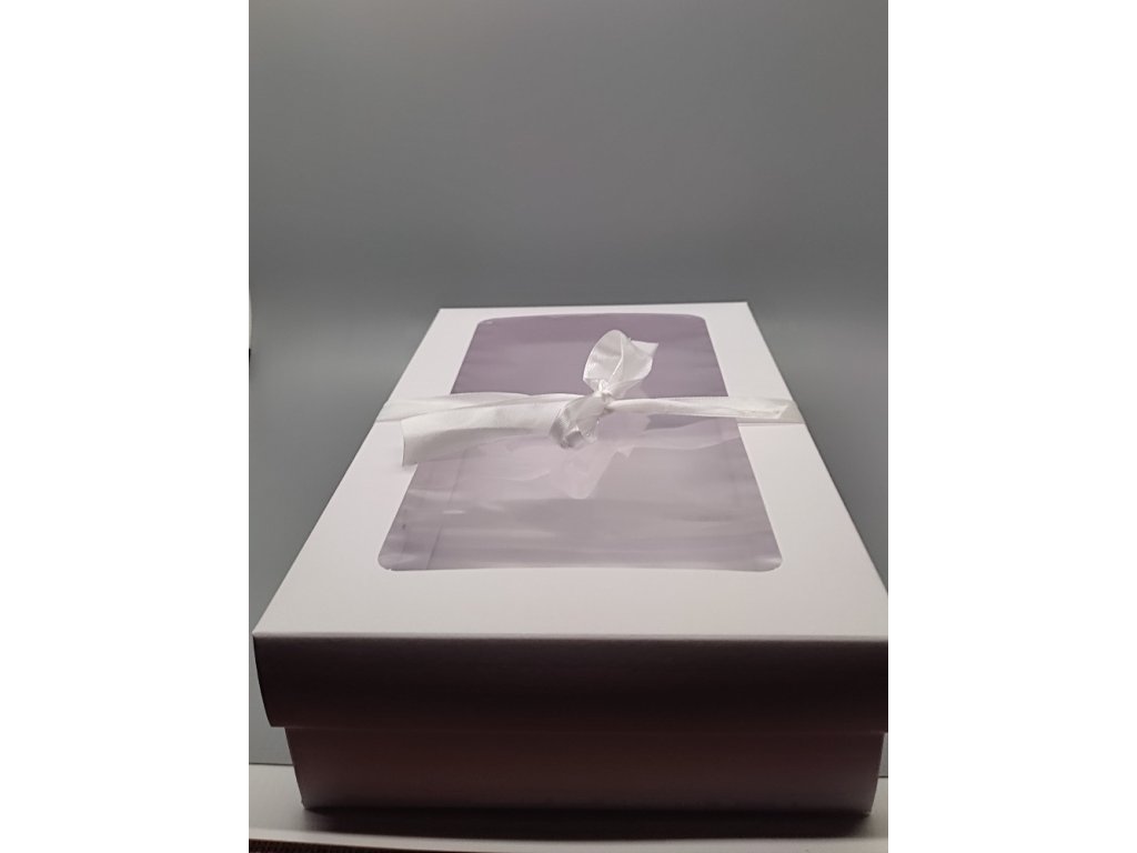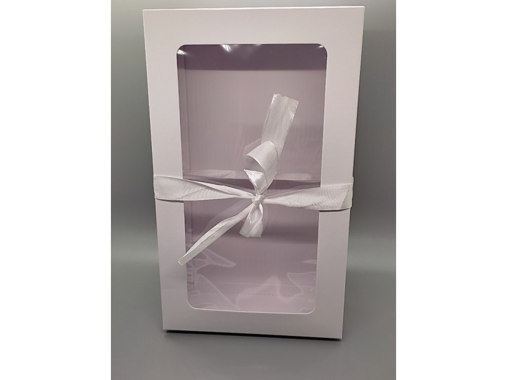 Dárková kazeta skládací s mašlí - stužkou a víkem s velkým obdélníkovým průhledem